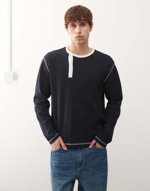 COLLUSION henley top with contrast detailing in navy blue