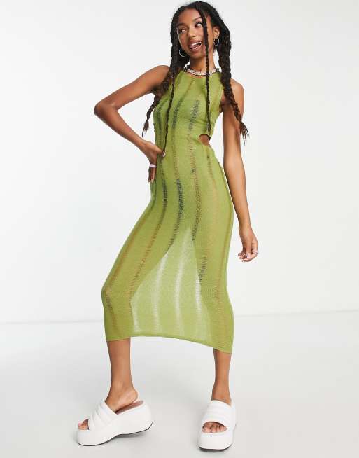 COLLUSION knit cut out tank top midi dress in green