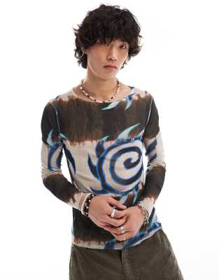 COLLUSION long sleeve muscle mesh abstract print festival T-shirt