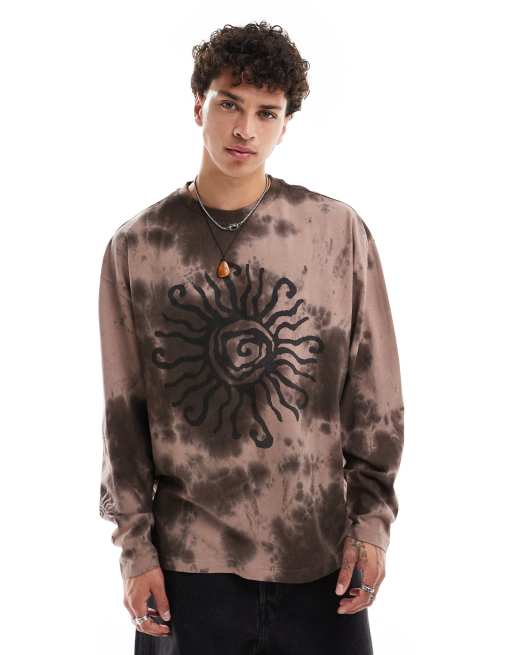 COLLUSION Long sleeve skater fit T-shirt with print and brown tie dye