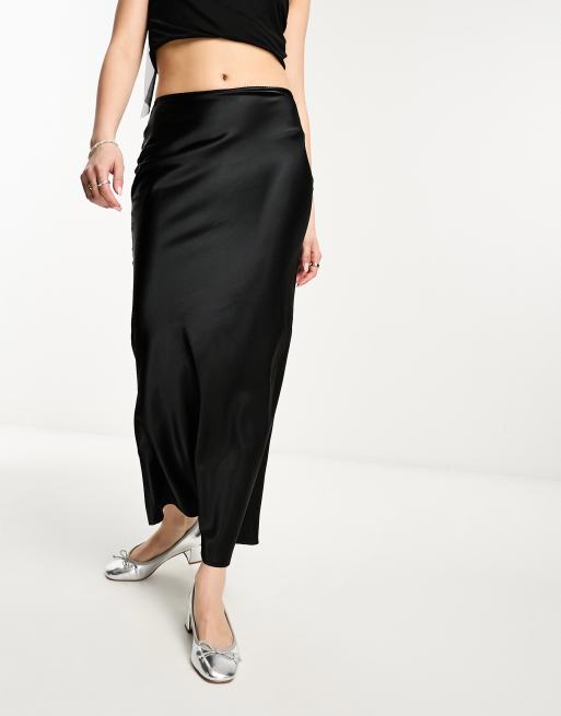 COLLUSION low rise satin maxi skirt in black