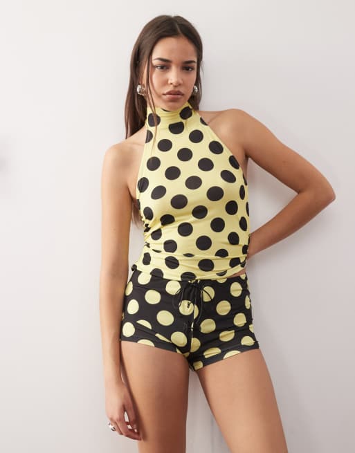 COLLUSION micro mini shorts in yellow giant dot with lace-up - part of a set