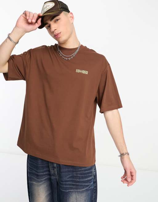 COLLUSION mirror logo t-shirt in dark brown