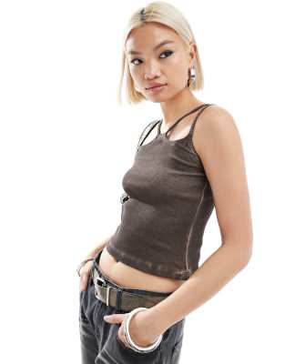 COLLUSION multi strap washed tank top in brown