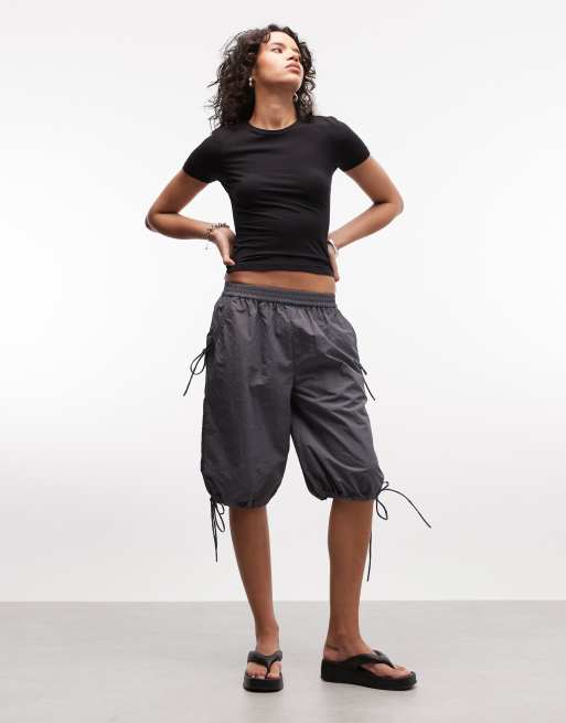 COLLUSION nylon channel longline shorts in gray