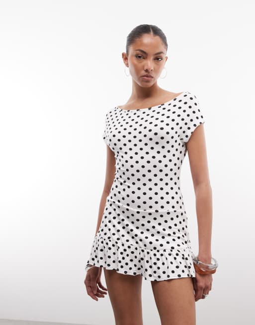 COLLUSION one shoulder drop waist mini dress in white polka dot print