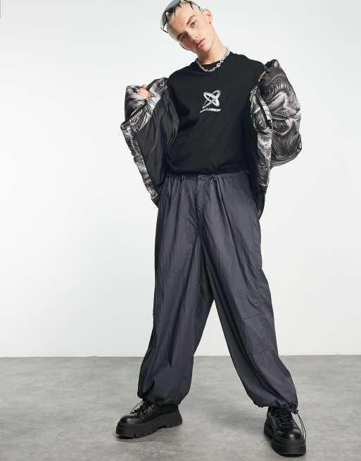 COLLUSION oversized crinkle parachute cargo pants in gray
