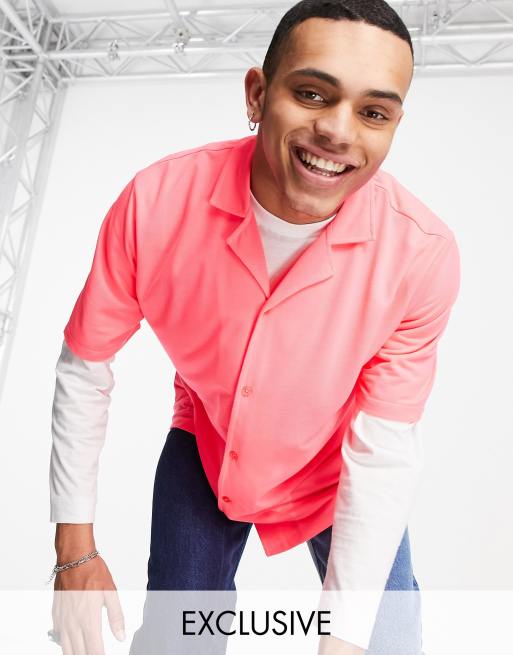 COLLUSION oversized jersey shirt in neon pink pique fabric set