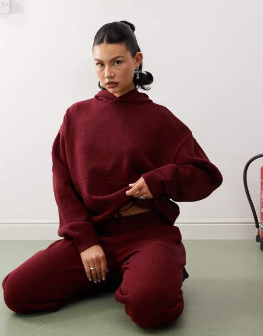 COLLUSION oversized knitted hoodie in burgundy - part of a set