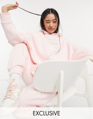 COLLUSION oversized weekender hoodie & sweatpants in pale pink set