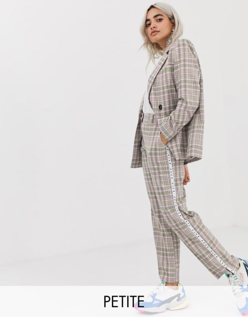 COLLUSION Petite check suit with side tape