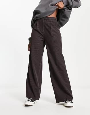 COLLUSION pinstripe tailored baggy pants in brown