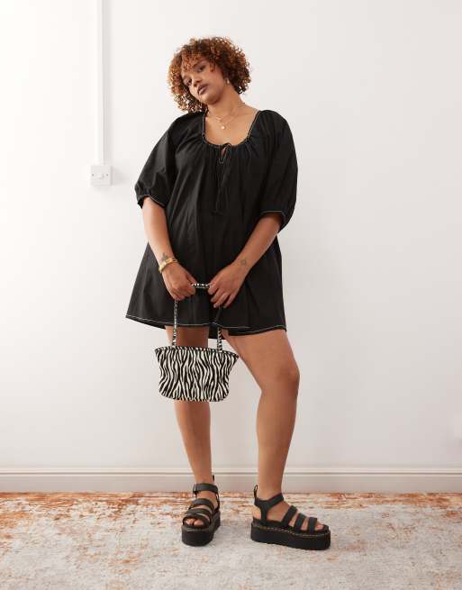 COLLUSION Plus puff sleeve mini smock swing dress in black