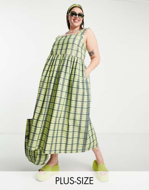 COLLUSION Plus twill pinafore maxi dress in yellow check