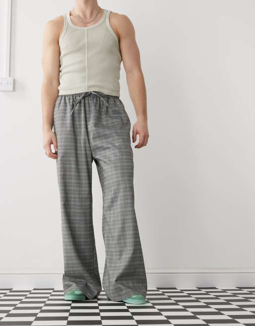 COLLUSION pull on baggy tailored sweatpants in gray plaid