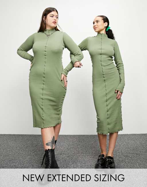 COLLUSION rib exposed seam midi dress in sage