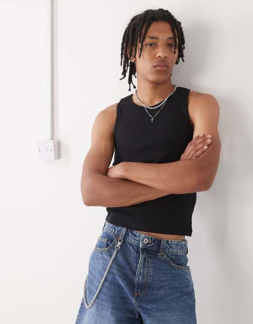 COLLUSION ribbed tank top in black
