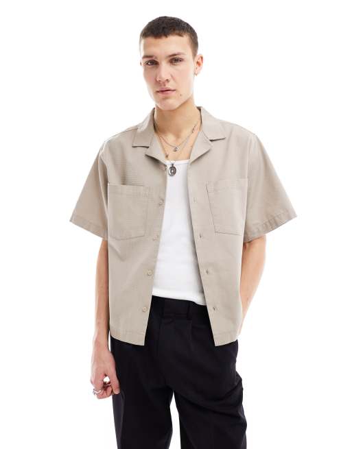 COLLUSION ripstop revere short sleeve shirt in stone