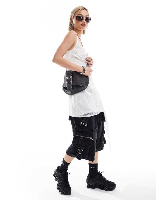 COLLUSION satin jacquard and lace deconstructed mini slip dress in ivory