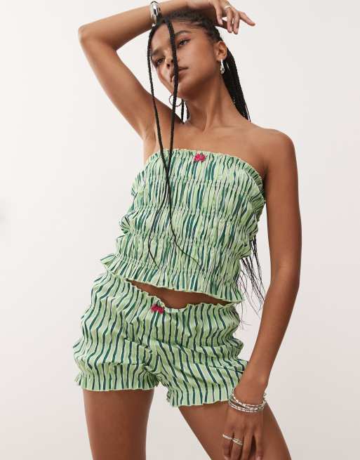 COLLUSION shirred micro shorts in green stripe - part of a set