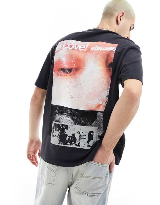 COLLUSION skater fit graphic back print t-shirt in black