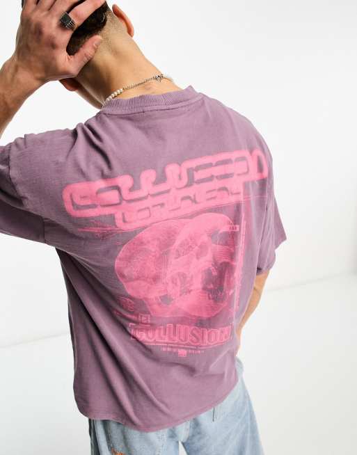 COLLUSION skull print slub short sleeve T-shirt in washed berry
