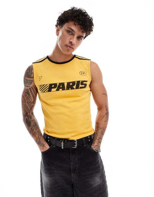 COLLUSION Soccer tank top in yellow with Paris print