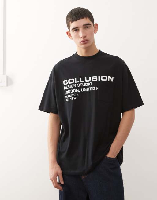 COLLUSION t-shirt with print and pocket in black