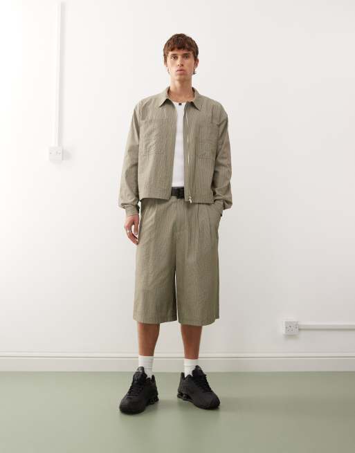 COLLUSION tailored longline skater jorts in khaki