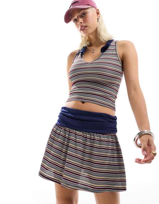 COLLUSION tennis mini skirt with fold over waistband in stripe - part of a set