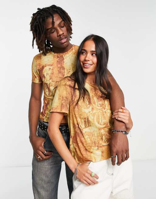 COLLUSION Unisex applique T-shirt in Renaissance print