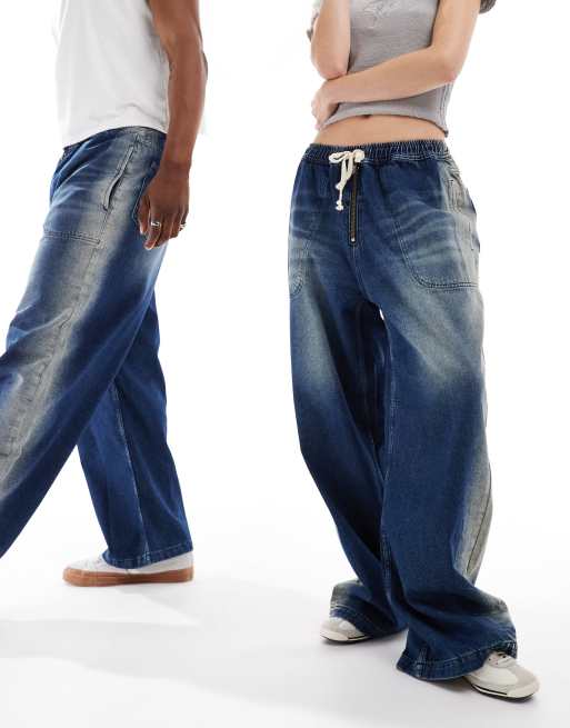 COLLUSION unisex baggy track jeans in darkwash