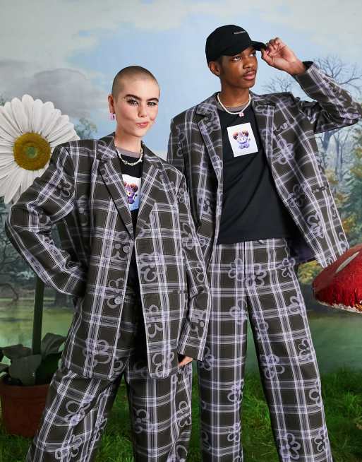 COLLUSION unisex blazer in check and floral
