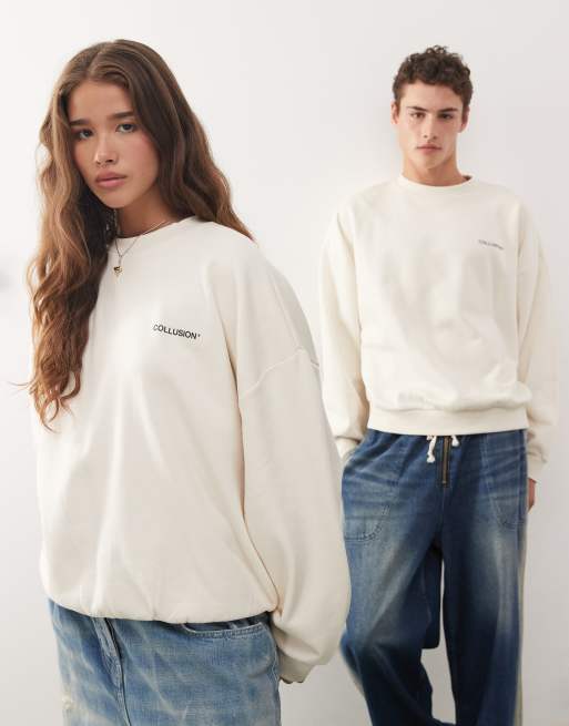 COLLUSION Unisex boxy sweatshirt in ecru with logo print