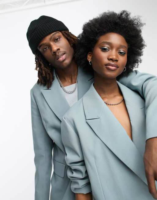 COLLUSION Unisex double breasted blazer in dusty blue - part of a set
