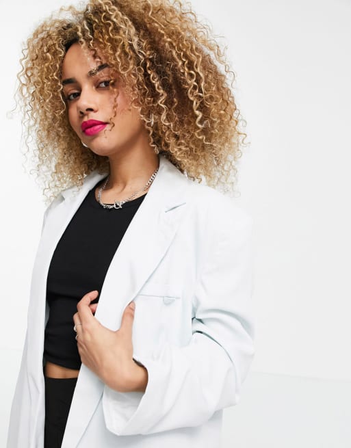 COLLUSION Unisex oversize blazer & low rise straight leg pants in ice blue