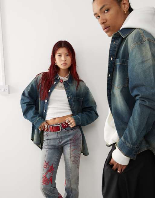 COLLUSION unisex oversized denim shacket in midwash blue