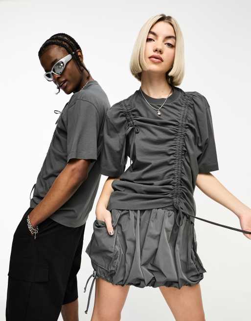 COLLUSION Unisex ruched crop T-shirt in dark gray