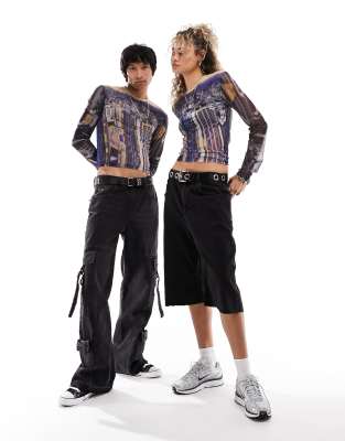 COLLUSION Unisex slim muscle fit printed mesh city scape T-shirt