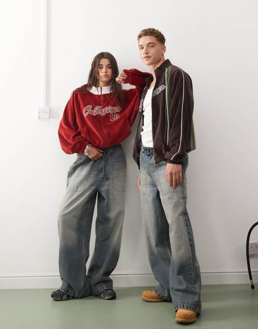 COLLUSION Unisex track jeans in stonewash