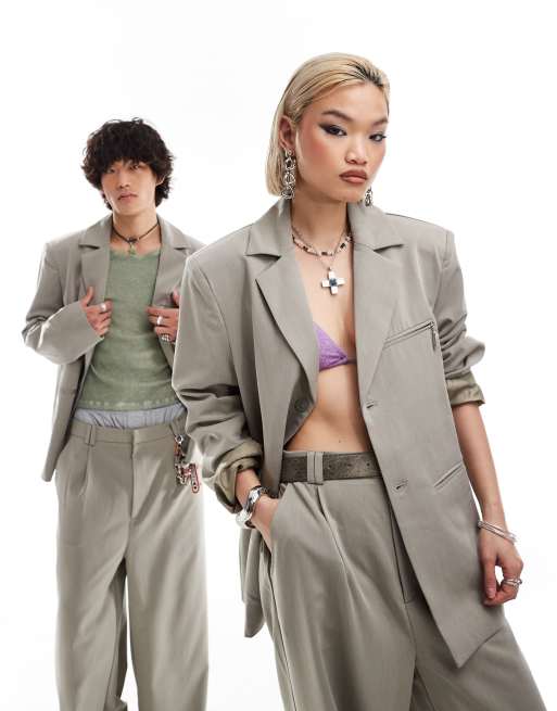 COLLUSION Unisex ultimate suit jacket in stone - part of a set