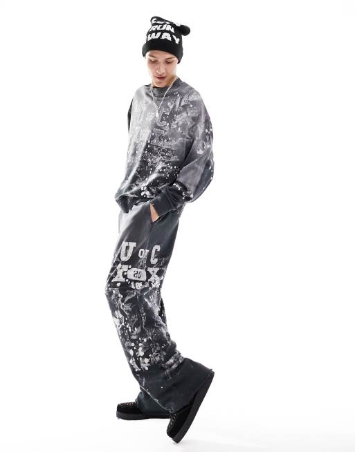 COLLUSION Varsity sweatpants with hand paint spray in gray - part of a set