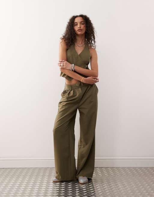 COLLUSION wide leg tailored pants in khaki - part of a set