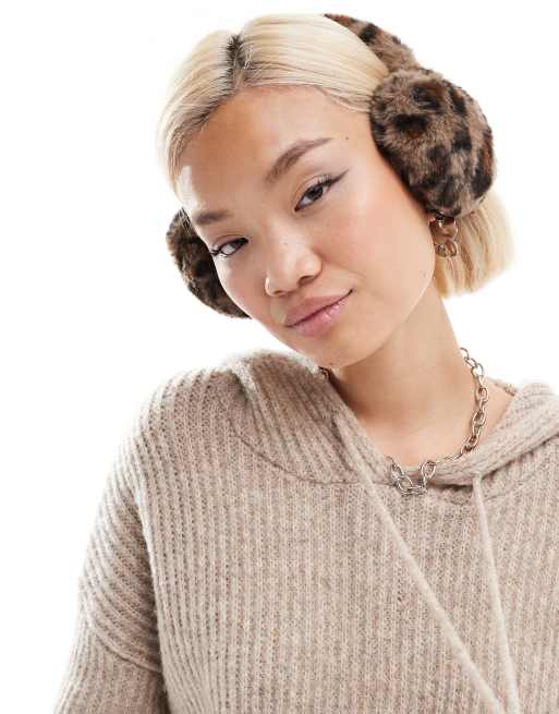 COLLUSION Womens fluffy earmuffs in leopard print