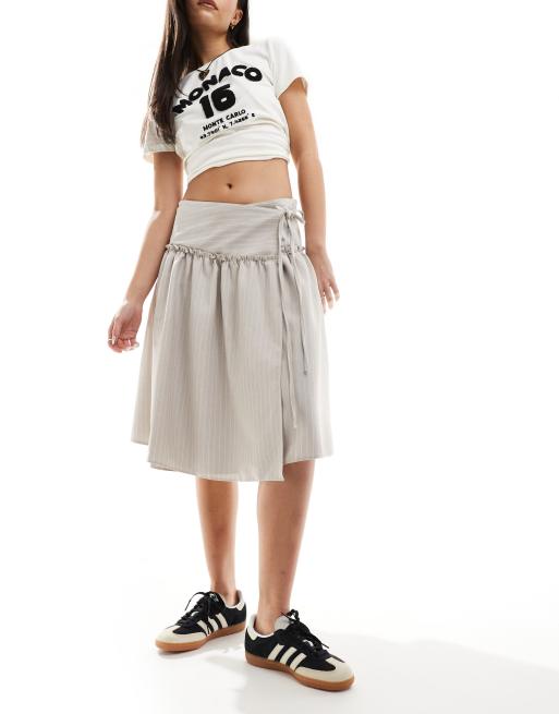 COLLUSION wrap tailored skirt in gray pinstripe