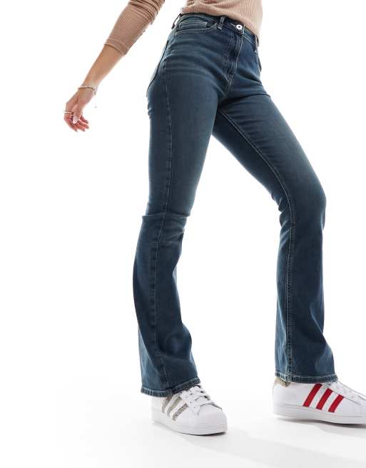 COLLUSION x007 stretch flare jeans in mid-blue wash