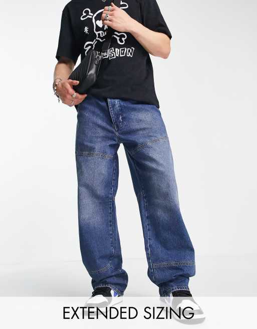COLLUSION x014 extreme 90s baggy dad jeans with utility details in blue