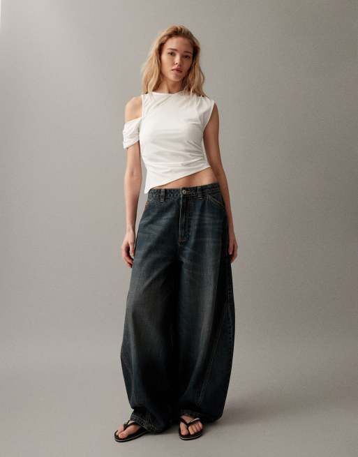 COLLUSION XL balloon jeans with twisted seams in darkwash blue
