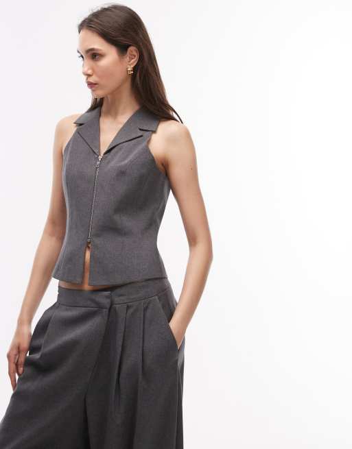 COLLUSION zip front vest in gray