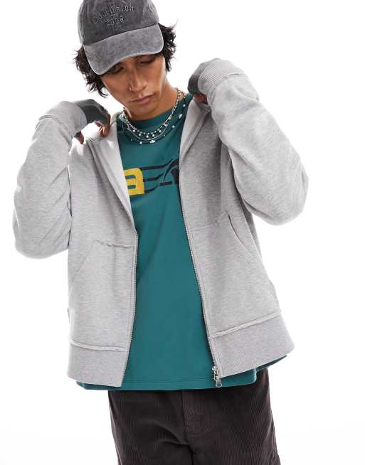 COLLUSION zip up hoodie in gray heather